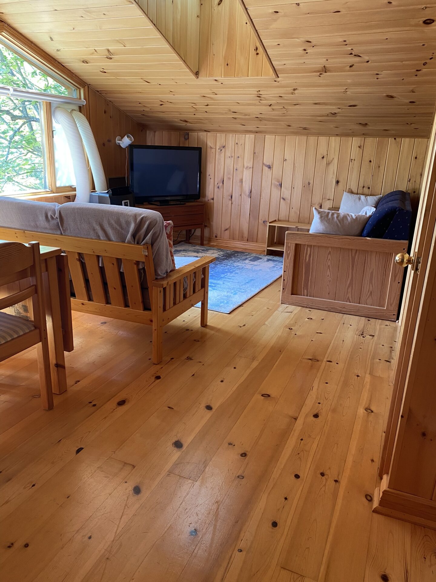 Office space with computer monitor, Wifi, Apple TV, Netflix, cell service, drilled well and iron blaster water purifier, window AC upstairs, washer (summer only), dryer, desk fans, wood stove and sauna, electric baseboard heat, propane BBQ large convection oven, air fryer, dishwasher, Keurig coffee maker (pods and ground), and dartboard, water cooler.