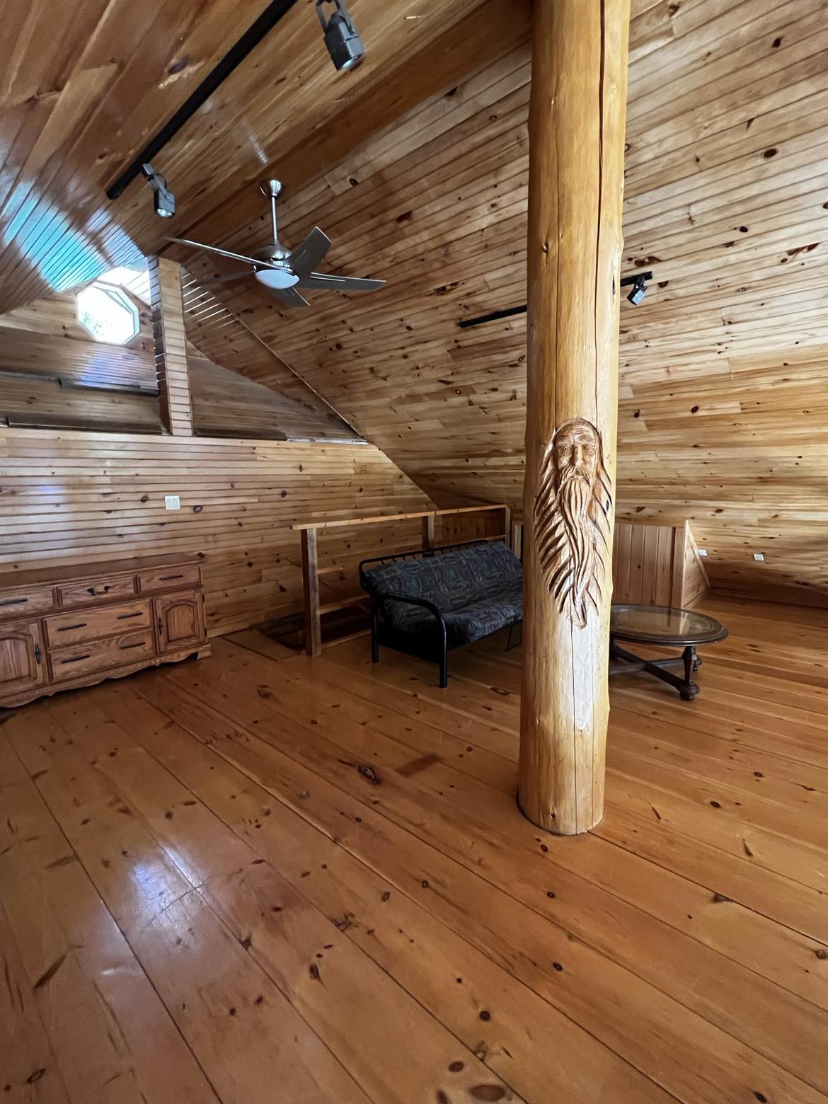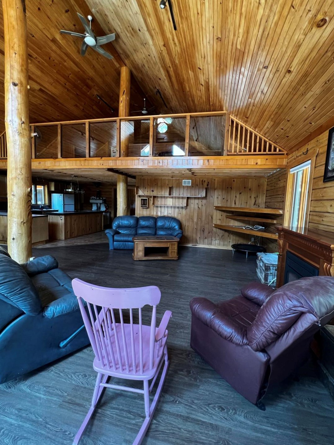 There are 3 ample bedrooms. An oversized master bedroom steps out onto the deck. Double his and her sinks in both bathrooms. The open-concept living area with 19-foot cathedral ceilings has a wonderful loft with a futon — a perfect office, additional bedroom, or sitting room — replete with a view of the great outdoors. Both the great room and the loft boast hand-carved posts. There’s even an onsite caretaker. What’s not to like?