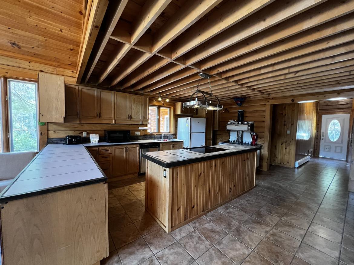 A nature lover’s paradise, the Ponderosa, a rambling 3,500 square foot Log house is situated on 50 private acres in the heart of Haliburton’s cottage country. Numerous walking trails are fringed by towering pines. A spacious wrap-around deck overlooks a large pond and forest.